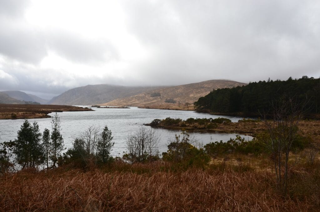 To tutaj ukryty jest słynny Glenveagh Castle, który wygląda jak wzięty z powieści fantasy. Choć zdjęcia z tej zagadki nie pokazują zamku, przedstawiają coś równie wyjątkowego: spokojne jezioro i otaczającą je dziką przyrodę, typową dla tej części parku.