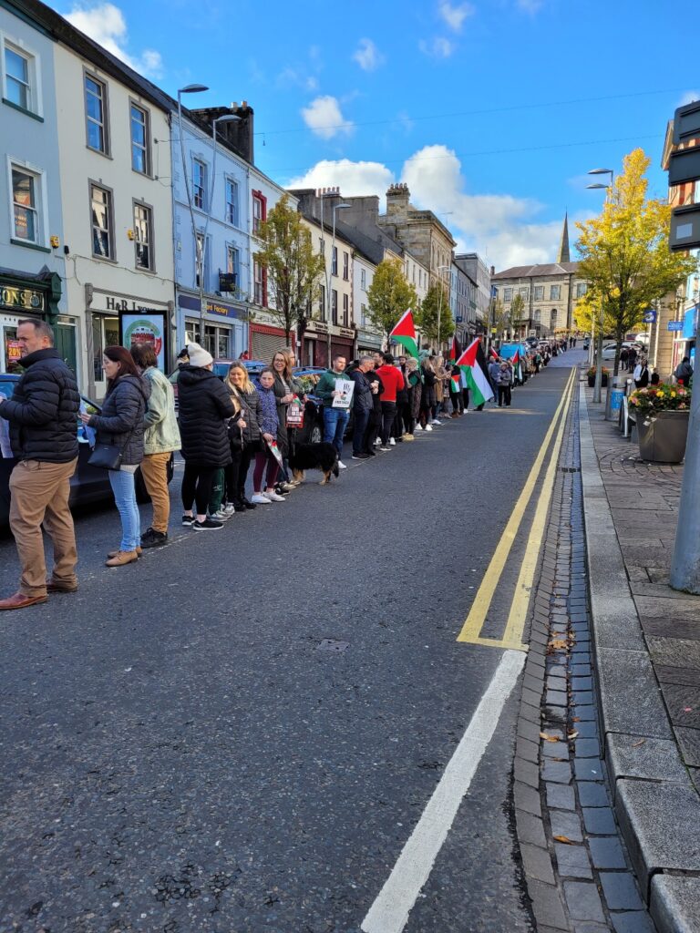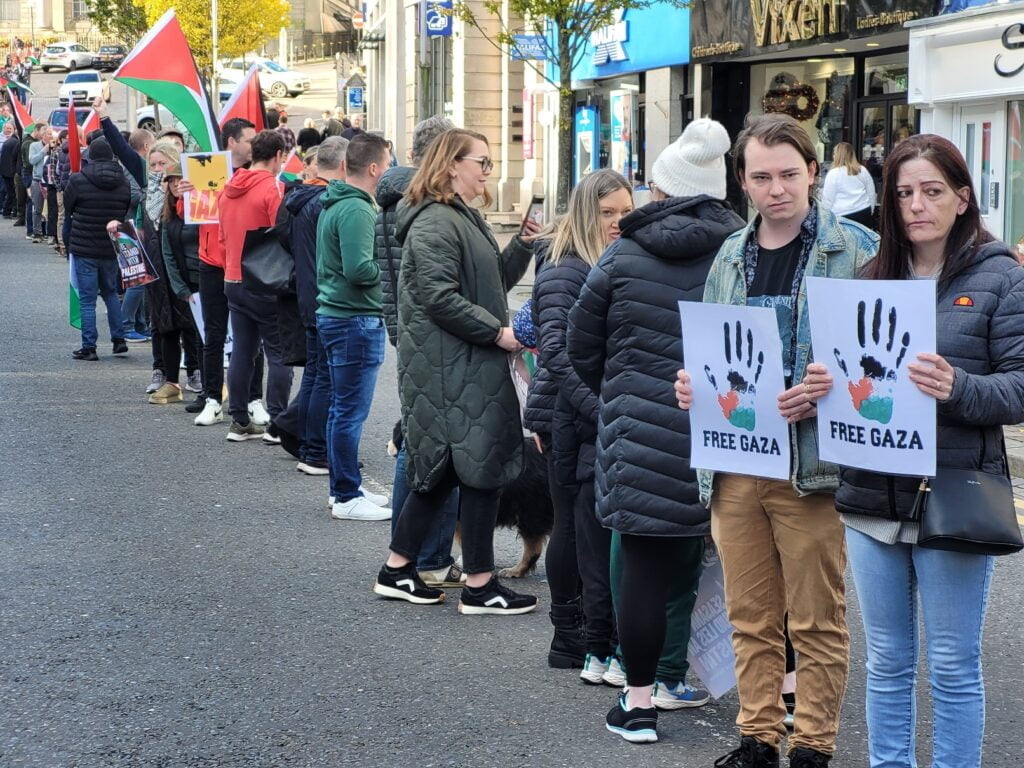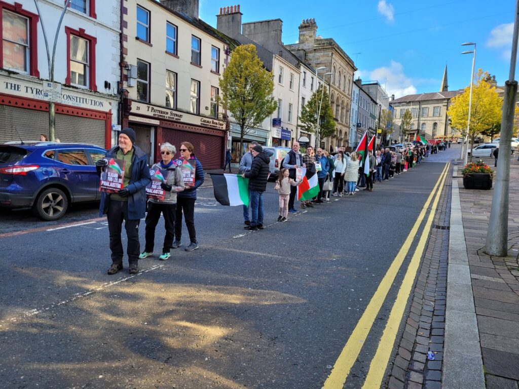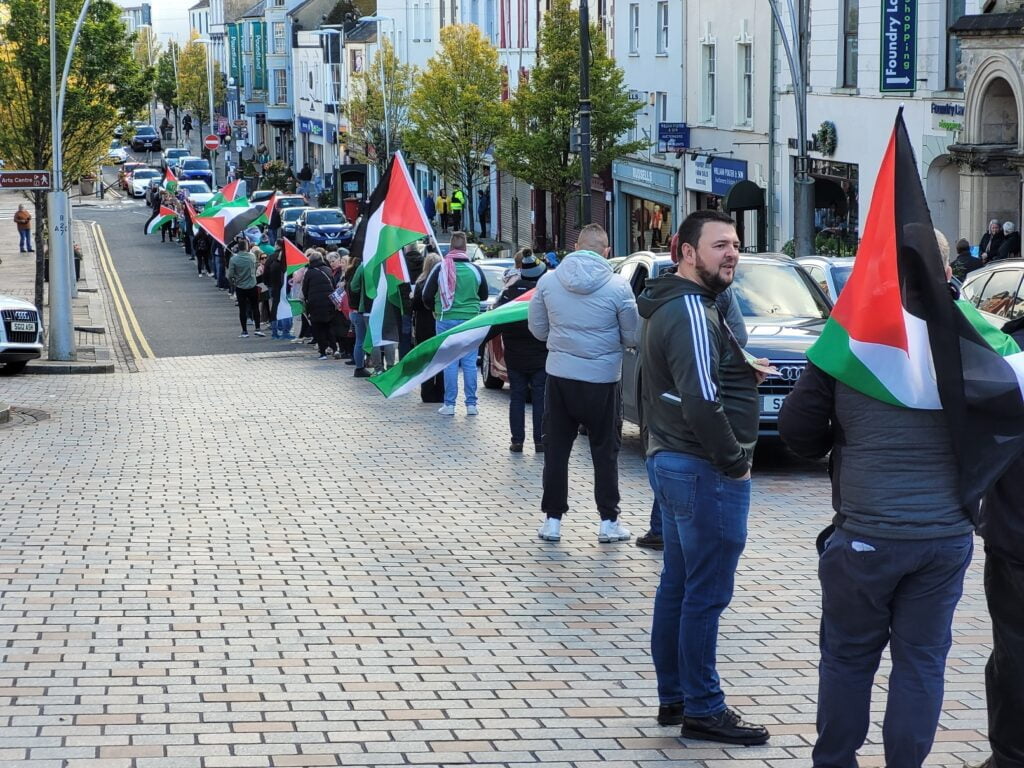 W Omagh odbyla się również demonstracja o Wolną Palestyne, w ktorej uczestniczylo dziesiątki osób z flagami i transparentami. Chciano wyrazić solidarność z narodem palestyńskim.
