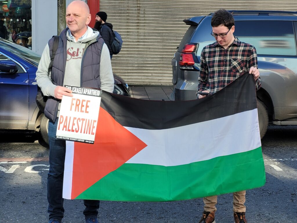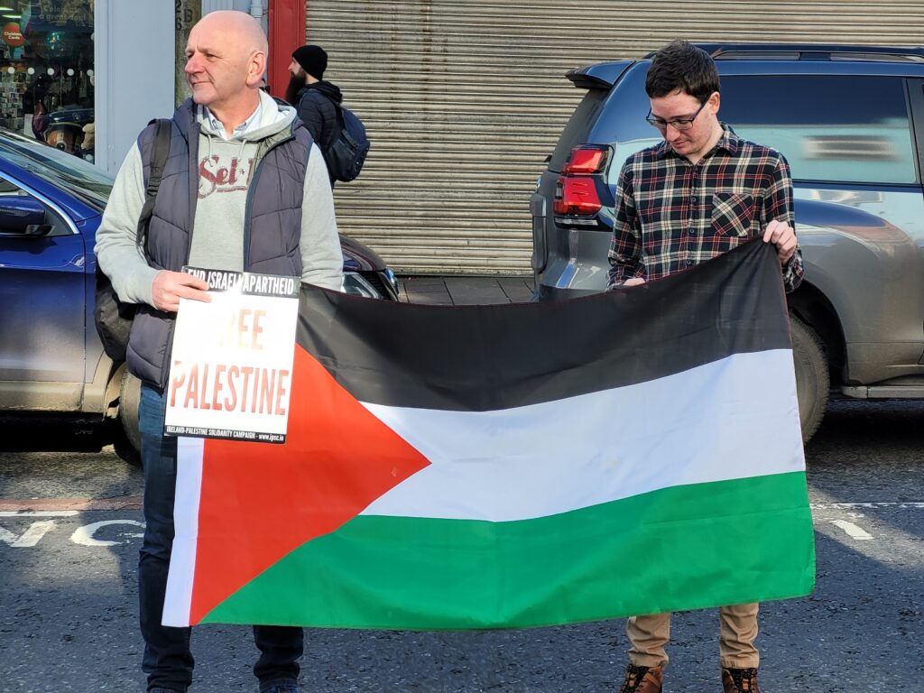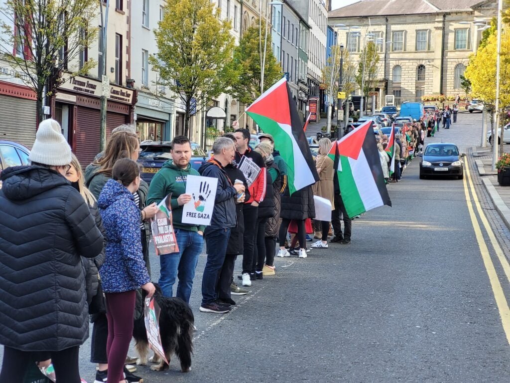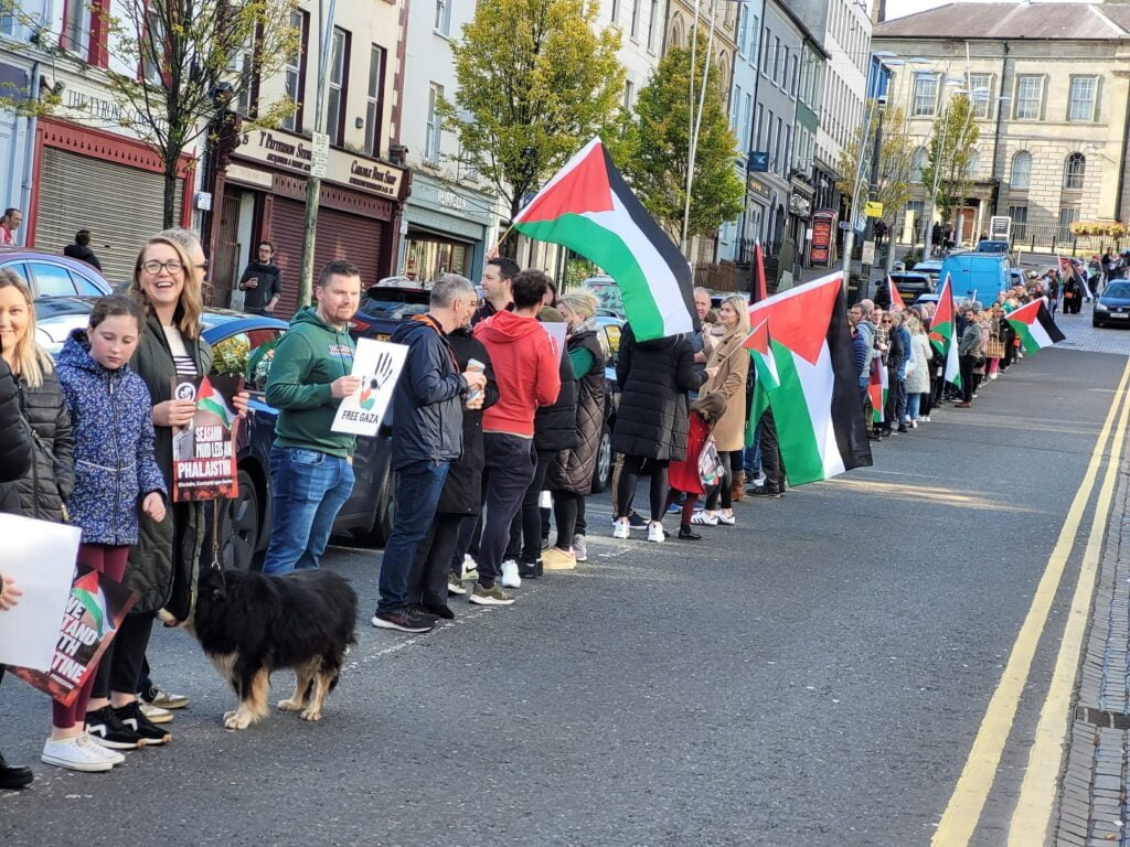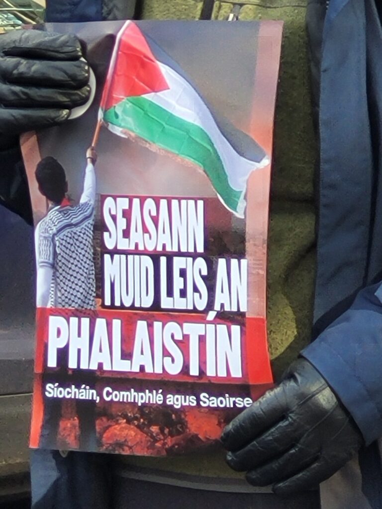 W Omagh odbyla się również demonstracja o Wolną Palestyne, w ktorej uczestniczylo dziesiątki osób z flagami i transparentami. Chciano wyrazić solidarność z narodem palestyńskim.